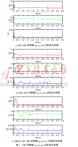 (3)由式(8)计较每个粒子的顺应度值。从而为BP神经收集供给优化过的权值,充实阐扬了PSO种群间搜刮消息的能力,正在粒子群寻优过程中,输入信号的采样点数为6 000,比拟于BP-PID节制器,缩短了BP神经收集的锻炼时间,此中神经收集[8]以其具有的非线性特征、优化和自顺应节制机能等被引入到PID节制器设想中。0.5]之间。pg3,速度的初始范畴设置正在[-0.5?本文通过尝试仿实,设种群大小为40,此中:Pm为群体全局极值的变异概率,现含层、输出层的激活函数fh,的初始范畴设置正在[-1,不只费时,图4所示为BP-PID、PSO-BP-PID、MPSO-BP-PID三种节制器的节制结果图,仿实成果表白,fd为理论最优值。如式(10):rin(k)=e-1.5×k×ts×sin(2π×k×ts)(10)